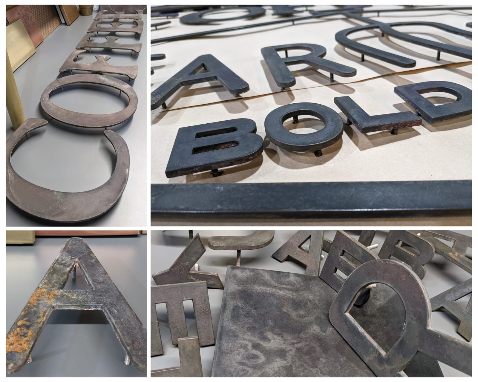 Magically transforming stainless steel built up letters into aged brass in the workshop this week!